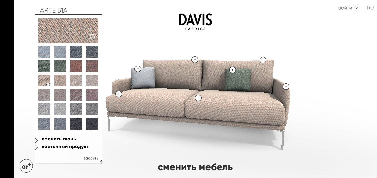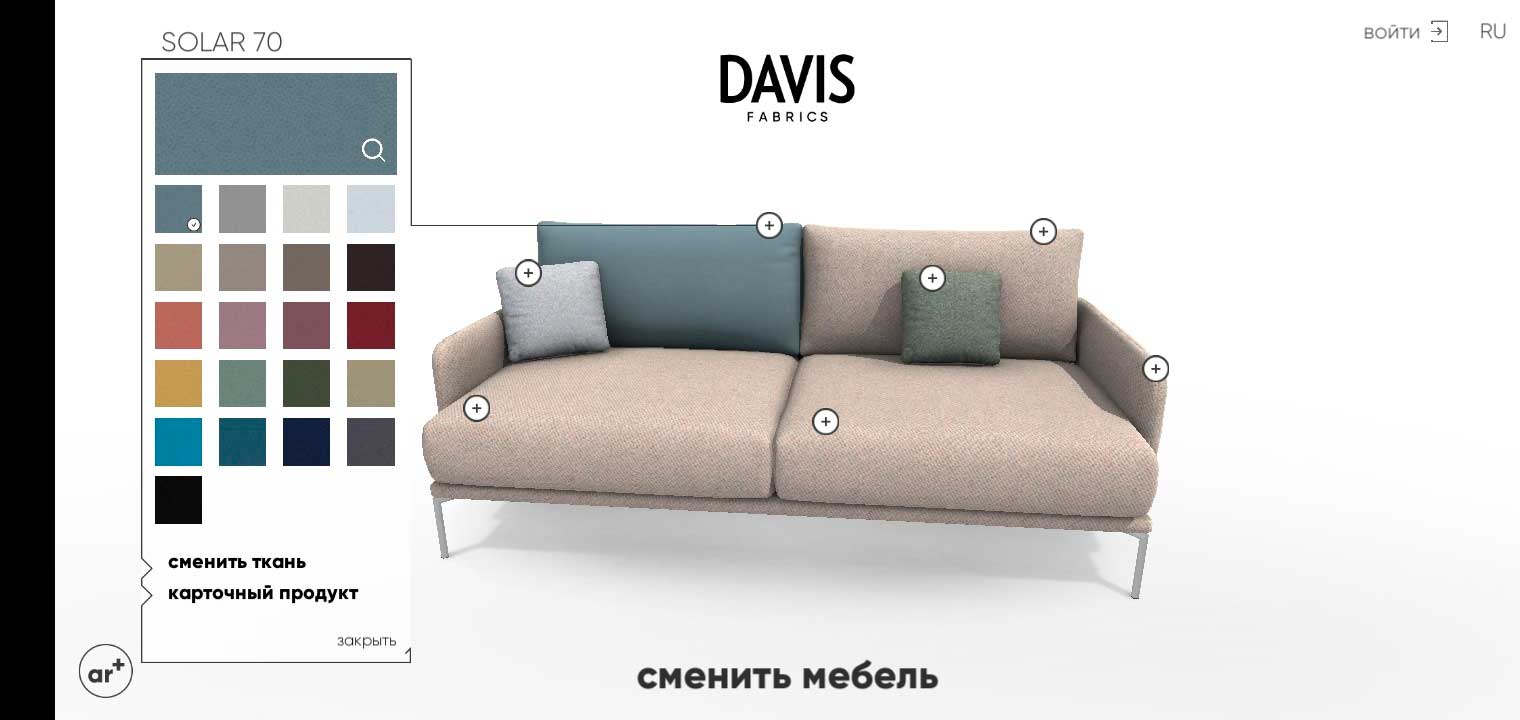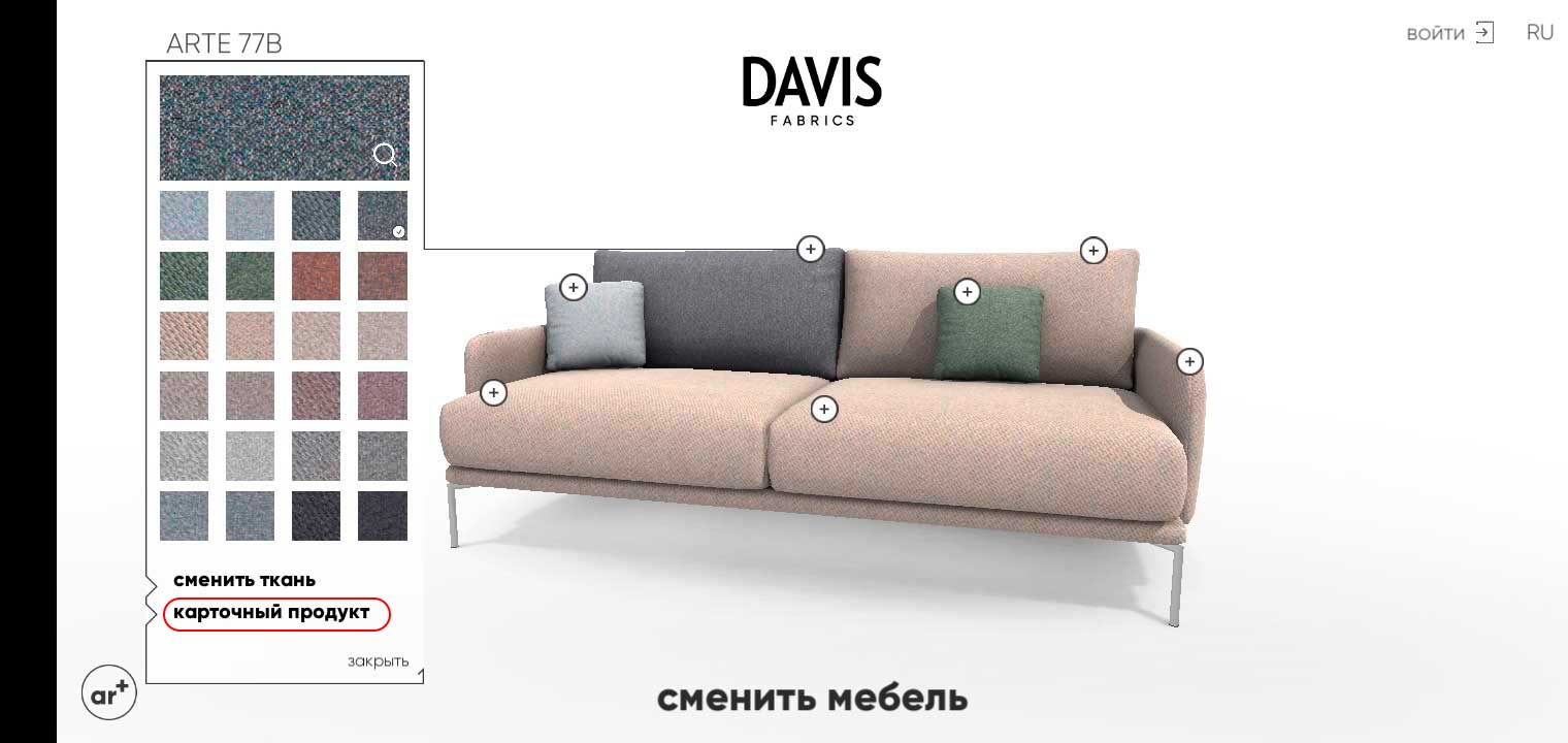 3D-визуализатор Davis AR была создана для удобства подбора ткани для мягкой мебели.