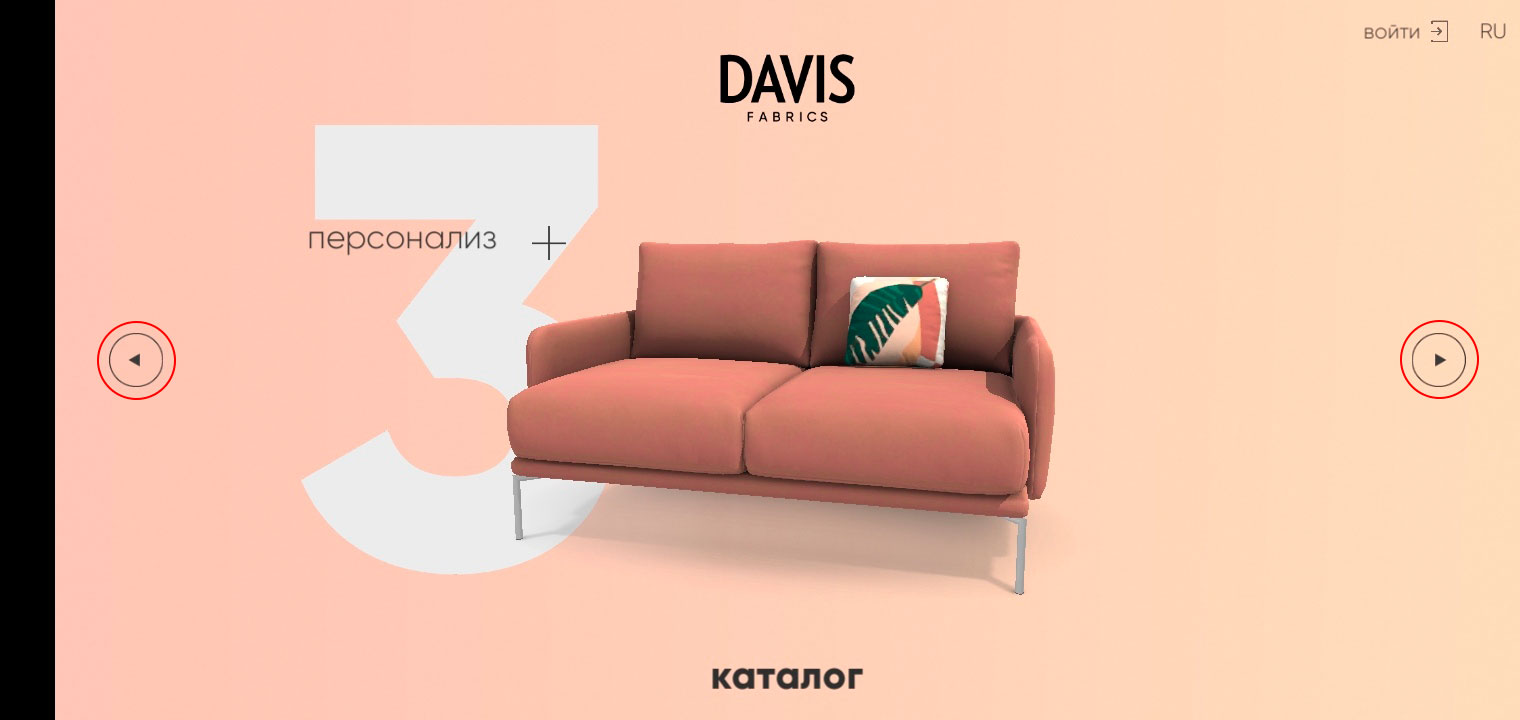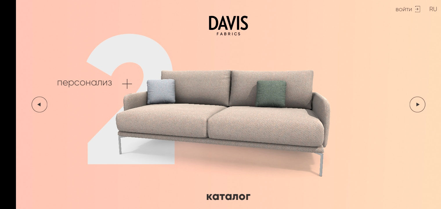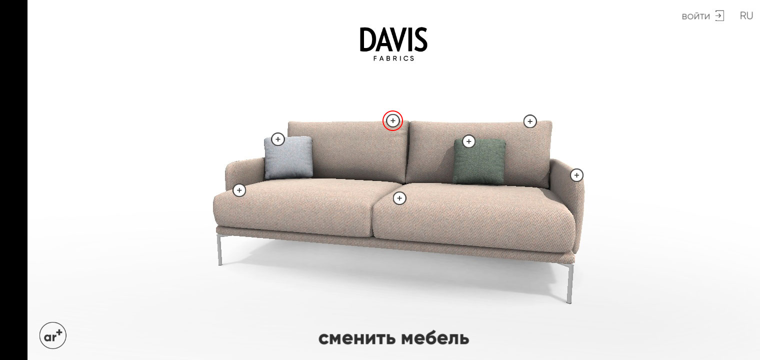 3D-визуализатор Davis AR была создана для удобства подбора ткани для мягкой мебели.