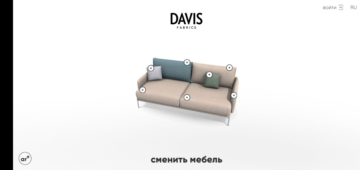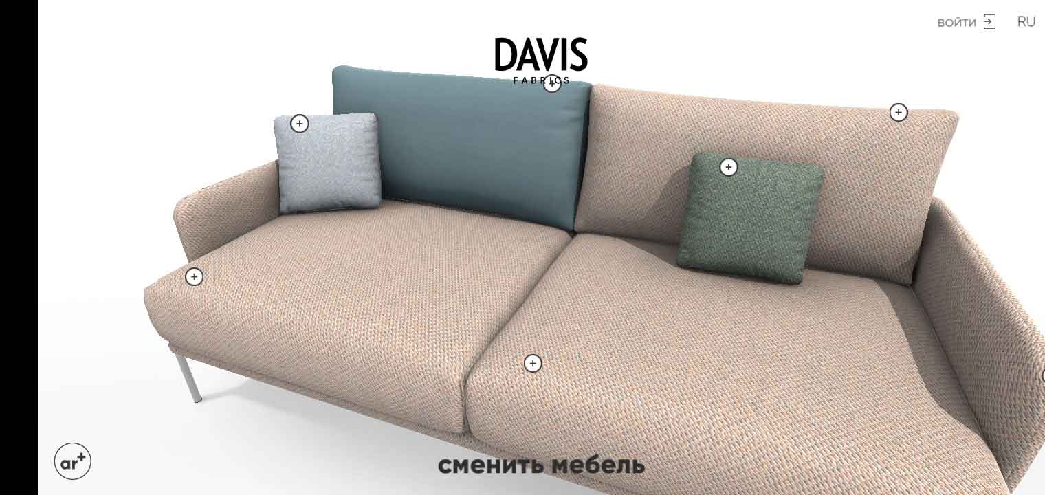 3D-визуализатор Davis AR была создана для удобства подбора ткани для мягкой мебели.